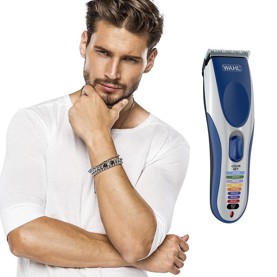 Hårklipperen Color Pro, der er produceret af amerikanske Wahl, er uden ledning, og hårklipperen kan derfor oplades. Du får hele 18 tilbehørsdele med til hårklipperen.