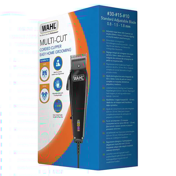 Med Wahl Multicut får du en kraftfuld, ledningsbaseret hundeklipper, der er skabt til nem hjemmebrug på små og mellemstore hunde.