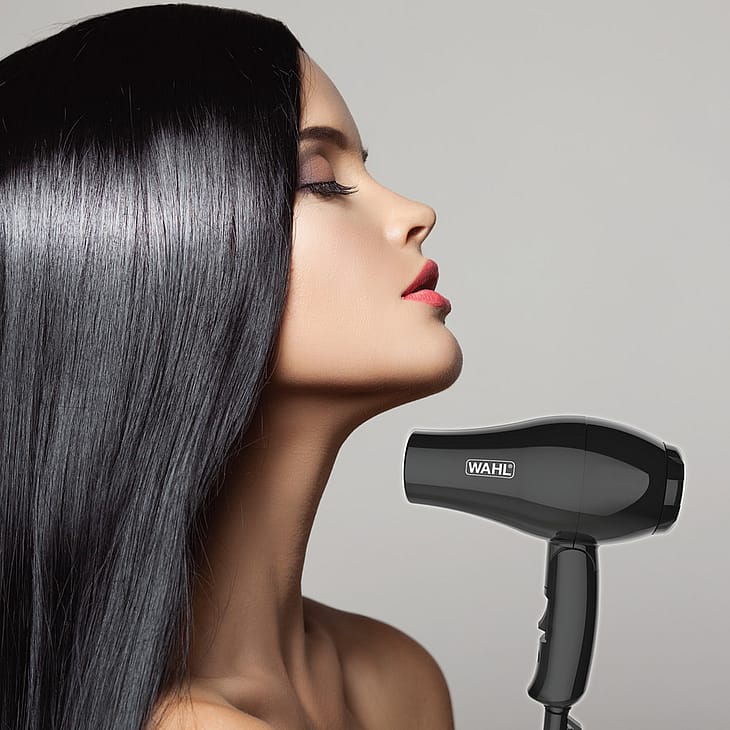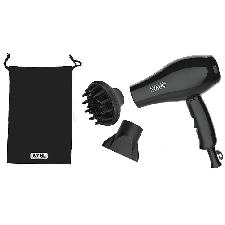 Det aftagelige beskyttelsesfilter gør det nemt for dig at rense din hårtørrer for hår og støv, så den holder længere. Du får både et fønnæb til glat hår og præcisionstørring samt en diffuser til krøllet hår med til rejsehårtørreren fra WAHL.