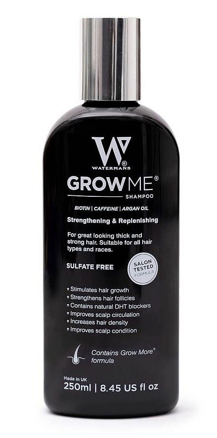 Watermans Grow Me Shampoo er en prisvindende hair loss shampoo til mænd og kvinder, designet til at øge hårvæksten og få håret til at føles tykkere.