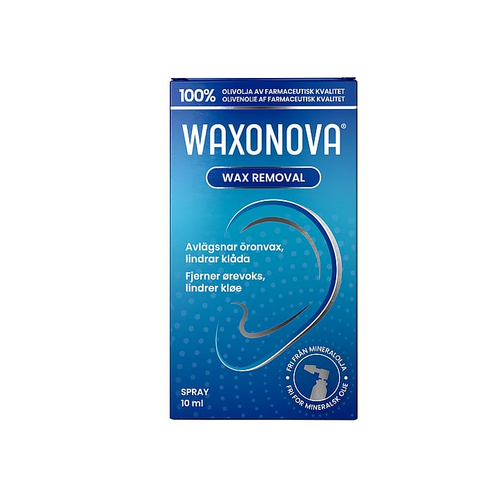 - Waxonova må ikke anvendes i tilfælde af perforeret trommehinde eller overfølsomhed over for olivenolie.