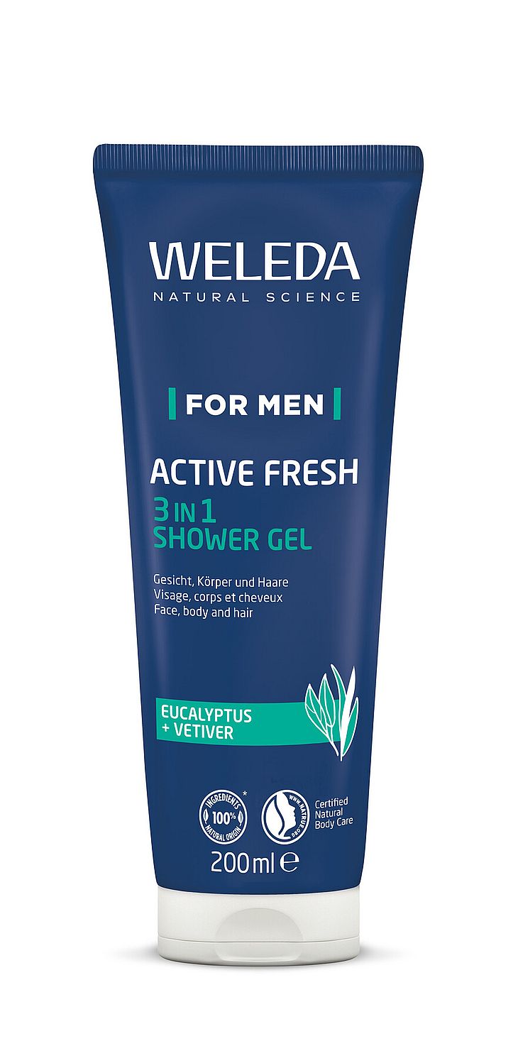 Naturlig multi-rengøring til mænd, renser ansigt, krop og hår3-i-1 duschgel til hud, hår og ansigt, der skummer og renser effektivt uden at udtørre huden. For en opfriskende følelse fra naturlige duftnoter af eucalyptus og vetiver. Indgår i Weledas herreserie og indeholder ingredienser med 100% naturlig oprindelse. Dermatologisk testet.Multifunktionel produkt, renser ansigt, krop og hår. Opkvikkende duft af eucalyptus og vetiver. Gelformel, der virker fugtbevarende.