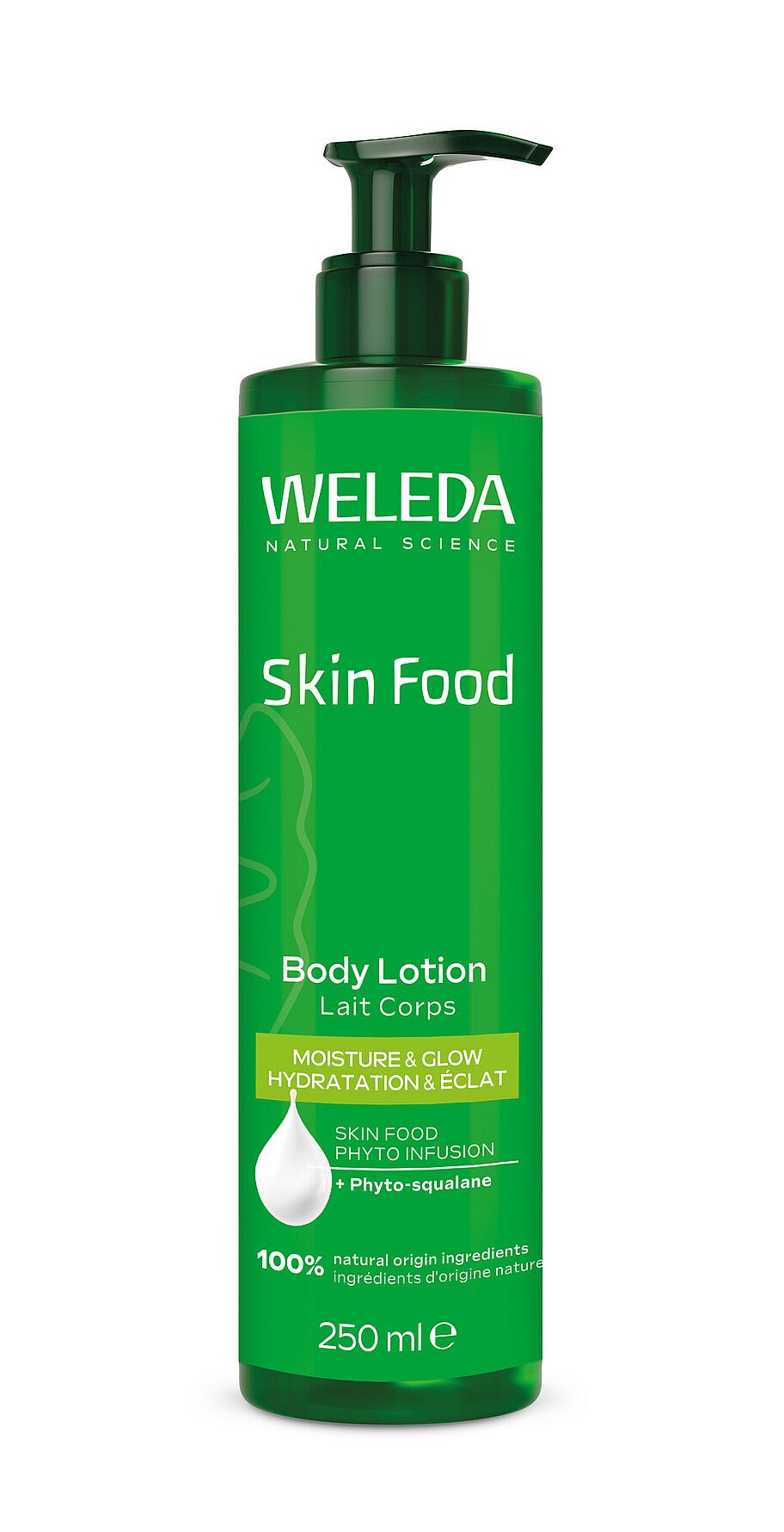 Beriget med den unikke SKIN FOOD PHYTO INFUSION, der indeholder ekstrakter af kamille, morgenfrue, rosmarin og stedmoderblomst. Lotionen giver en naturlig glød umiddelbart efter påføring. Med phyto-squalane styrkes hudbarrieren, samtidig med at den behagelige tekstur gør huden blød og smidig – selv meget tør hud føles fugtet og balanceret.