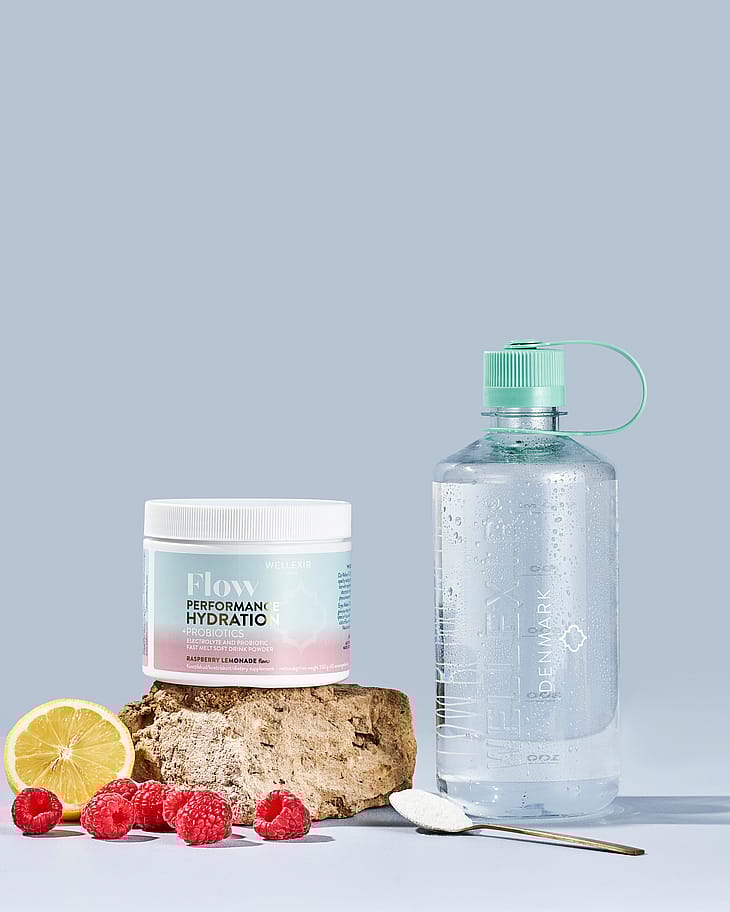Dextrose, surhedsregulerende middel (citronsyre), natrium, fiber (inulin), kokosvand pulver, kalium, calcium, aroma (hindbær), magnesium, sødestof (sucralose), vitamin C (L-ascorbinsyre), surhedsregulerende middel (æblesyre), Bifidobacterium lactis BIO5764, Lactiplantibacillus plantarum BIO1096, Bifidobacterium breve BIO6018, Lacticaseibacillus rhamnosus BIO6870, Lacticaseibacillus casei BIO5773, Levilactiobacillus brevis BIO5542, Bifidobacterium bifidum BIO5480, Bifidobacterium infantis BIO5478, Bifidobacterium longum BIO6283, Lactobacillus acidophilus BIO6307, spirulina-ekstrakt (Arthrospira Platensis), pantotensyre, vitamin B12 (methylcobalamin).