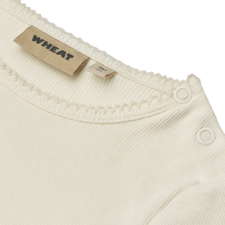 Wheats basis body er en sand klassiker i garderoben, når det kommer til småbørn. Denne body har trykknapper på den ene skulder samt i bunden for bedre komfort, når du skal klæde dit barn på.