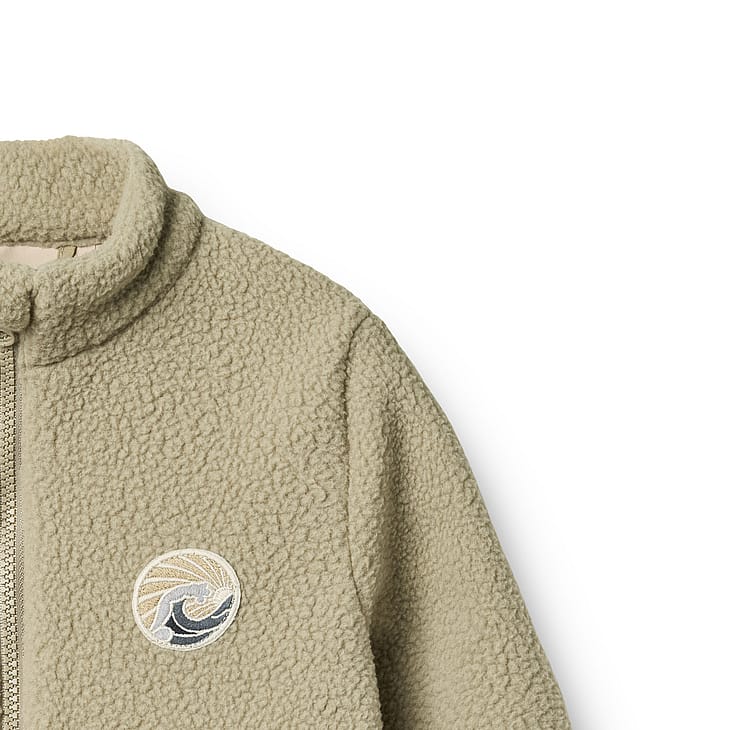 Wheat's fleecejakke er lavet af blødt genanvendt materiale, der er behageligt for dit barn at bevæge sig og lege i.