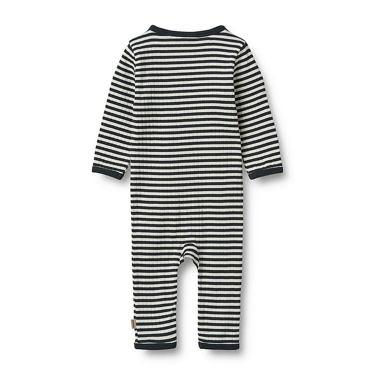 Langærmet heldragt med striber i blødt økologisk bomuld til baby.
