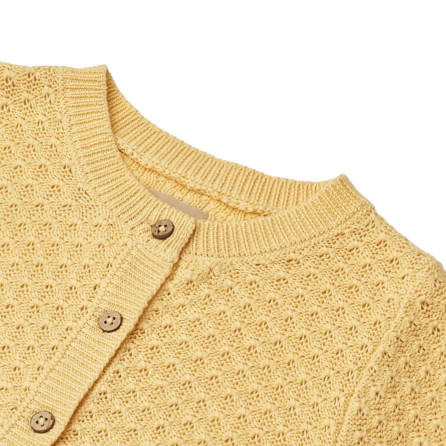 Langærmet strikcardigan i blødt økologisk bomuld til børn.