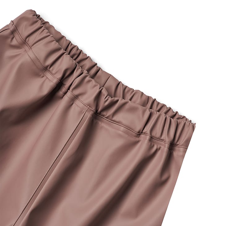 Regnbukserne har elastik i taljen samt i benkanten for at sikre en god pasform med gummistropper til under fødderne.