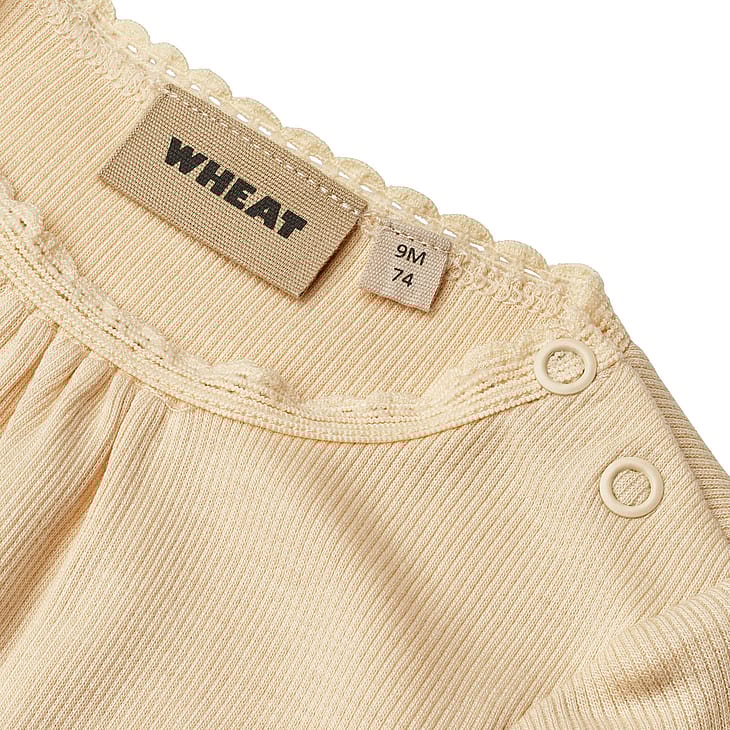 Wheats skønne bodyer er designet til unisex og er en sand klassiker i ethvert hjem med småbørn. Denne body har trykknapper på den ene skulder samt i bunden for bedre komfort, når du skal klæde dit barn på.