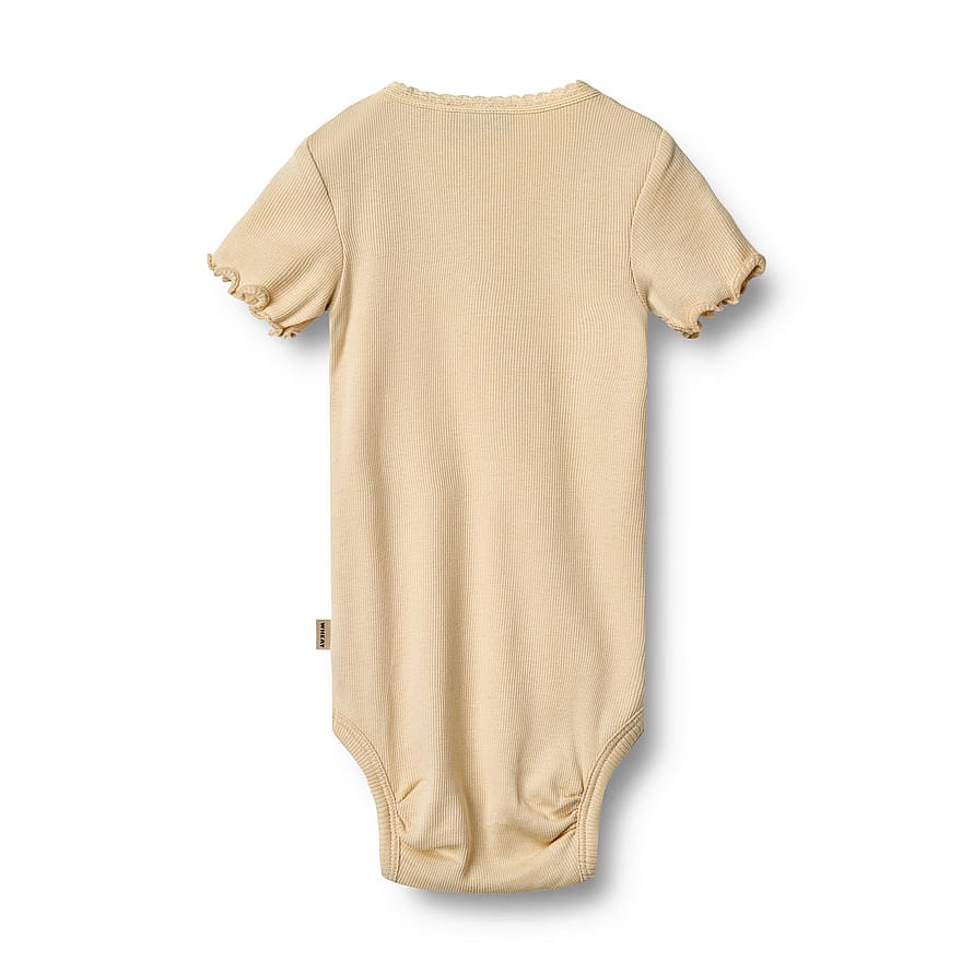 Skøn kortærmet rib body i økologisk bomuldsblanding til baby.