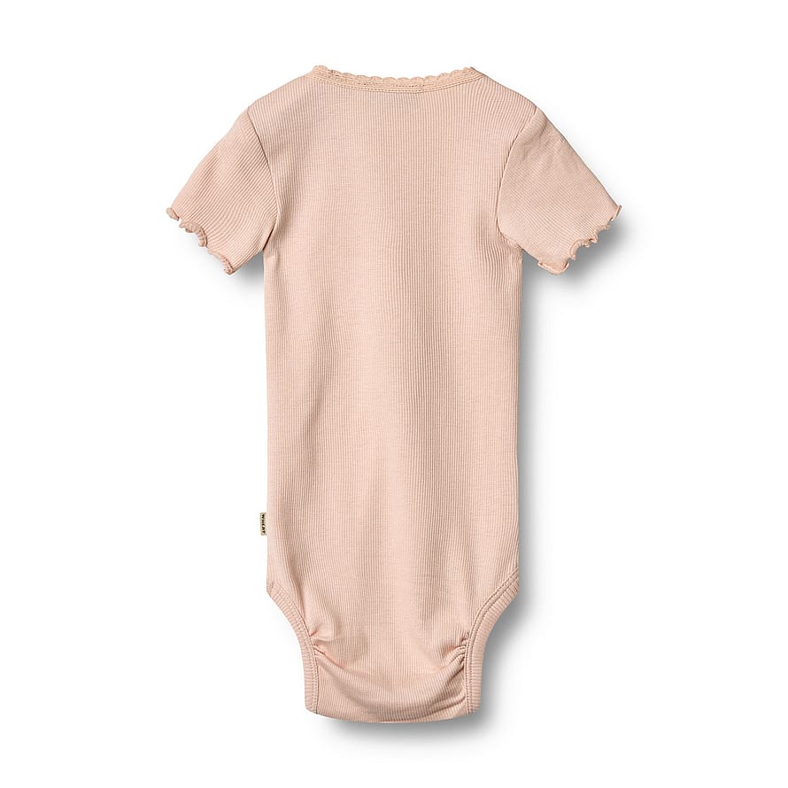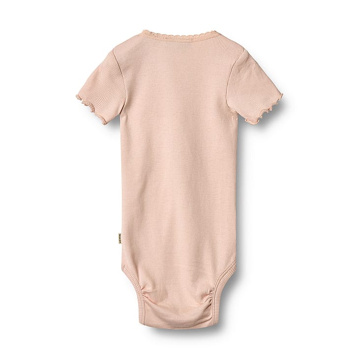Skøn kortærmet rib body i økologisk bomuldsblanding til baby.