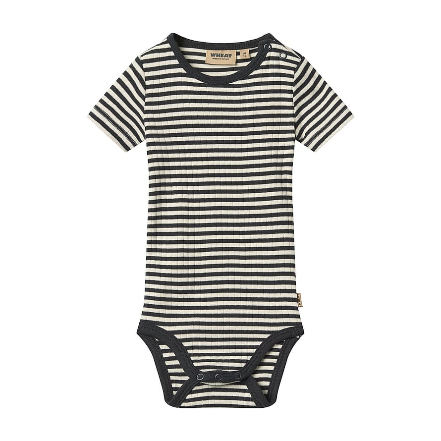 Wheats skønne bodyer er designet til unisex og er en sand klassiker i ethvert hjem med småbørn. Denne body har korte ærmer, samt trykknapper på den ene skulder og i bunden for bedre komfort, når du skal klæde dit barn på. Brug bodyen som den inderste del i ethvert outfit, da den er blød at have tæt på huden. Et af sommerens store must haves.
