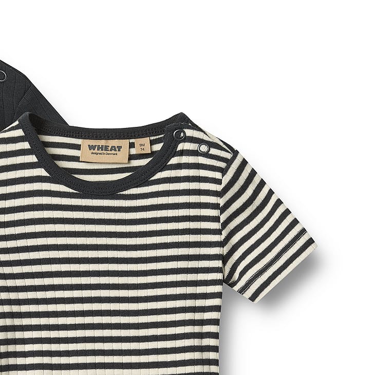 Wheats skønne bodyer er designet til unisex og er en sand klassiker i ethvert hjem med småbørn. Denne body har korte ærmer, samt trykknapper på den ene skulder og i bunden for bedre komfort, når du skal klæde dit barn på. Brug bodyen som den inderste del i ethvert outfit, da den er blød at have tæt på huden. Et af sommerens store must haves.