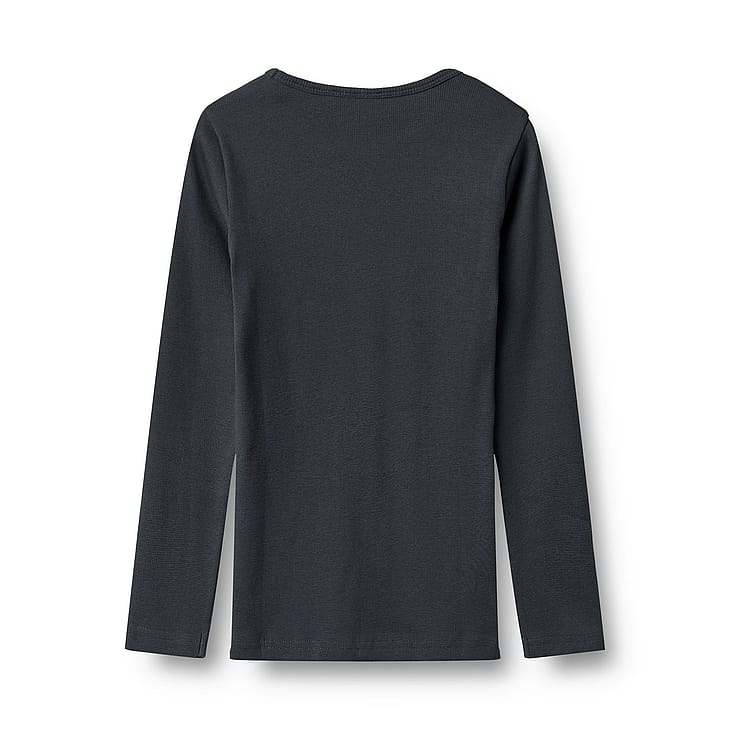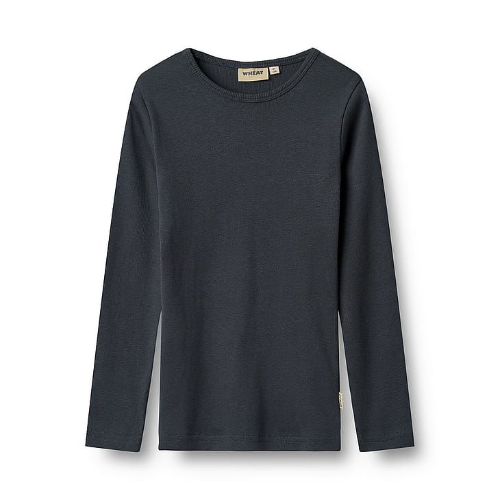 Blød langærmet rib t-shirt i økologisk bomuld til børn.