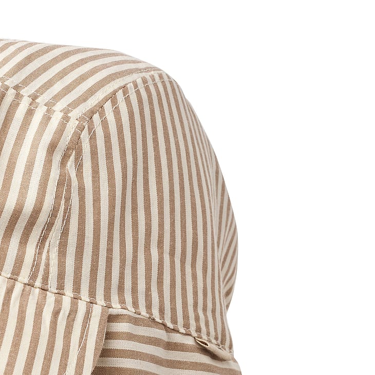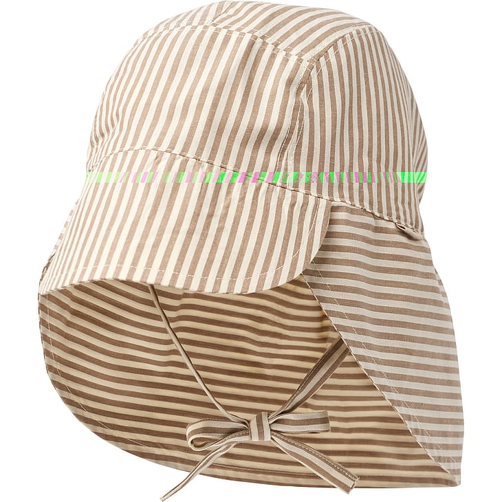 Den er designet til de mindste børn, hvor solhatten både har bindebånd under hagen samt elastik bagpå, der strammer ind, så hatten kan sidde tæt om hovedet på dit barn. -
