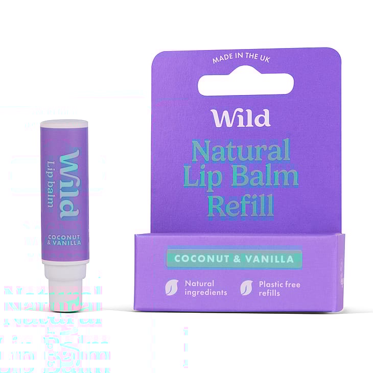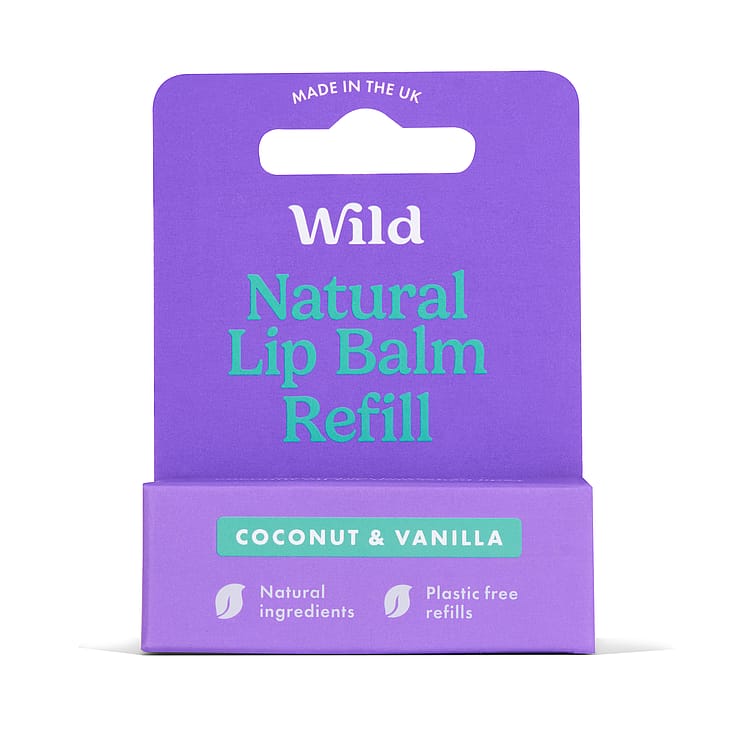 Lip Balm refill Coconut & Vanilla er en refill til Wild aluminiums etui og er 100% plastfri. Kan kastes i papiraffaldet.
