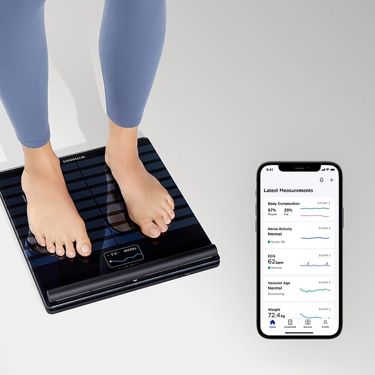 Derudover er Withings Body Scan beregnet til at måle en nervesundhedsscore, ved at udføre målinger på fødderne.