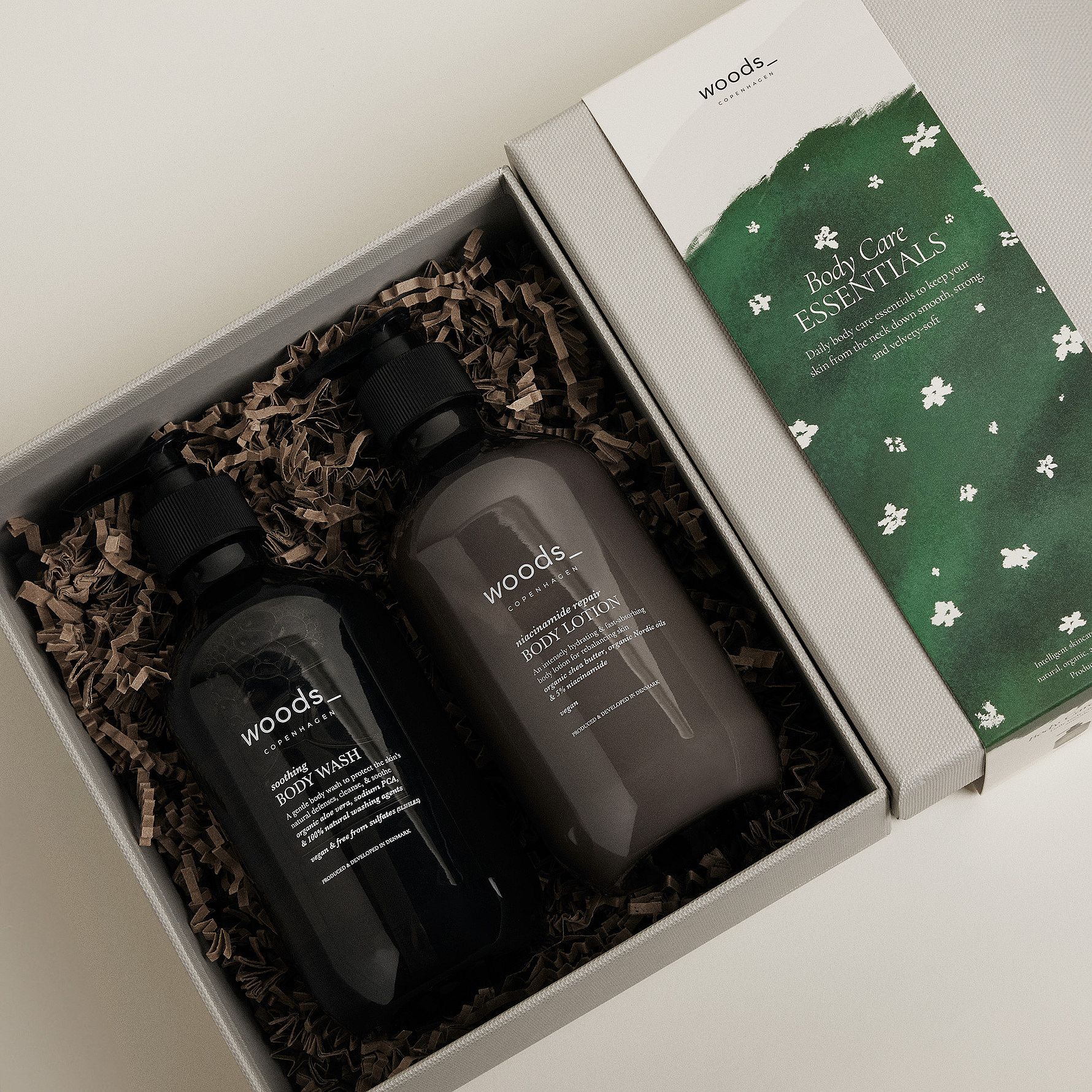 Dette Gift Set indeholder vores Soothing Body Wash og Niacinamide Repair Body Lotion, som forkæler huden med skånsomme vaskeaktiver og efterlader den blød og balanceret.