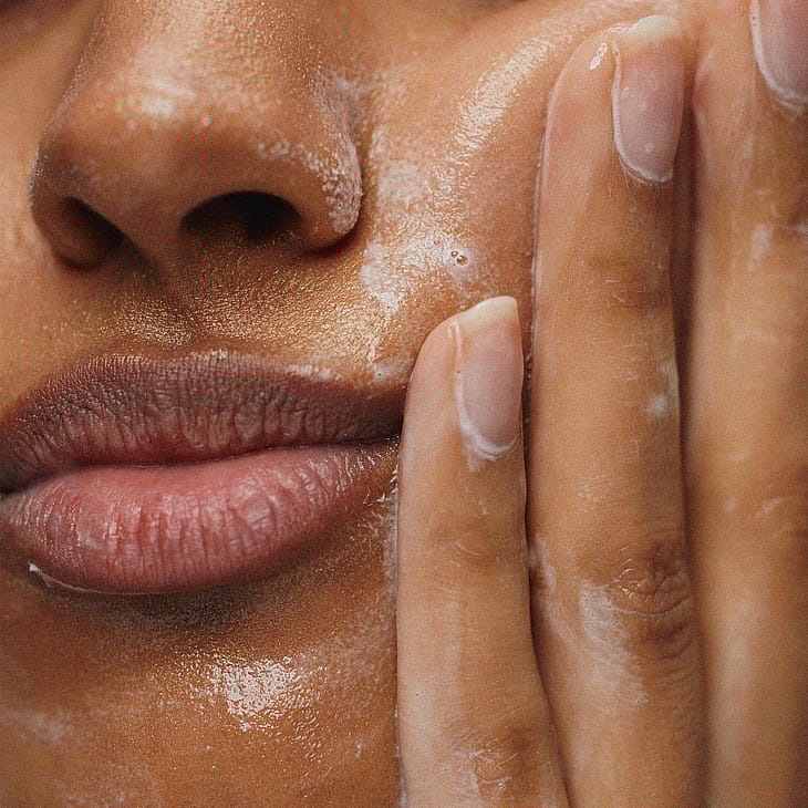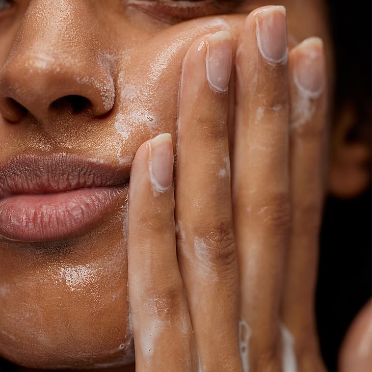 Påfør på fugtig hud, massér og skyl. Fokusér på T-zonen og oversete områder som hårgrænse og kæbe. Morgen og aften.
