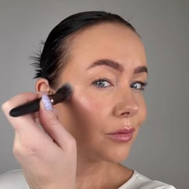 Blend forsigtigt med den spidse ende af Youngblood makeuppenslen YB14 Multi-Tasker Crème Blush brush eller med fingerspidserne for en strålende, glitrende finish.
