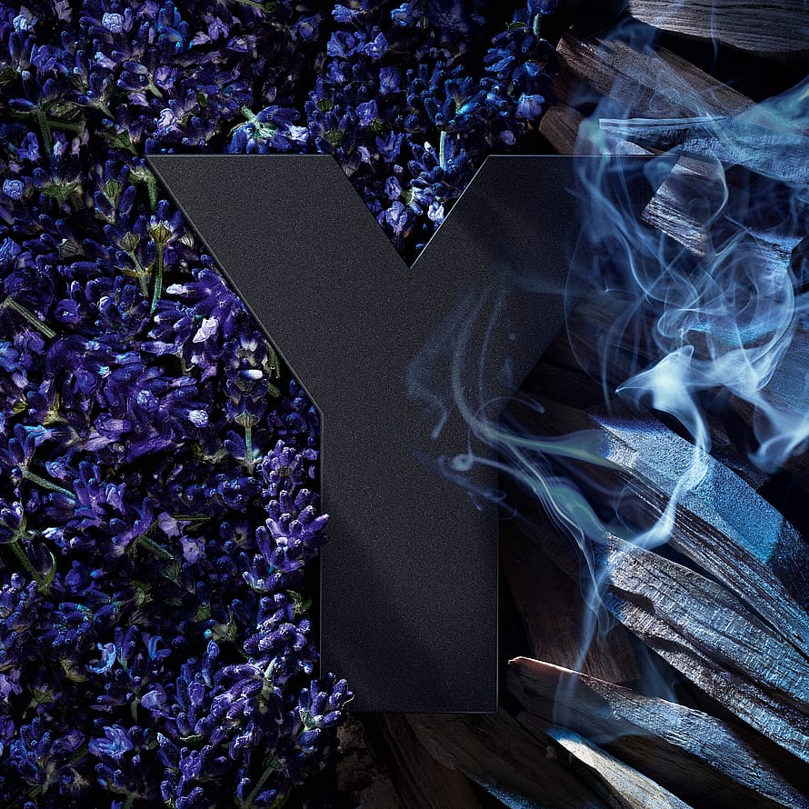 I et dristigt statement med Y’s signaturfarve, der konstant skifter, fanger den nye flakon lyset gennem glassets elegante, gennemsigtige metalliske blå nuance.