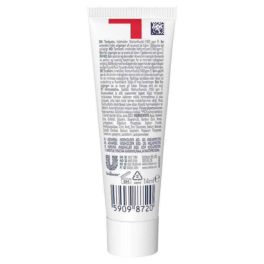 Zendium Classic plejer dine tænder effektivt og mildt. Tandpastaen indeholder både fluor, enzymer og colostrum. Fluor forstærker tandemaljen og beskytter mod karies.