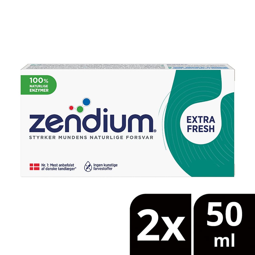Zendium plejer dine tænder effektivt og mildt. Tandpastaen indeholder både fluor, enzymer og colostrum.