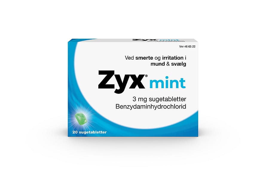 Zyx® sugetabletter virker antiinflammatorisk og lindrer smerte og irritation i mund og svælg.
